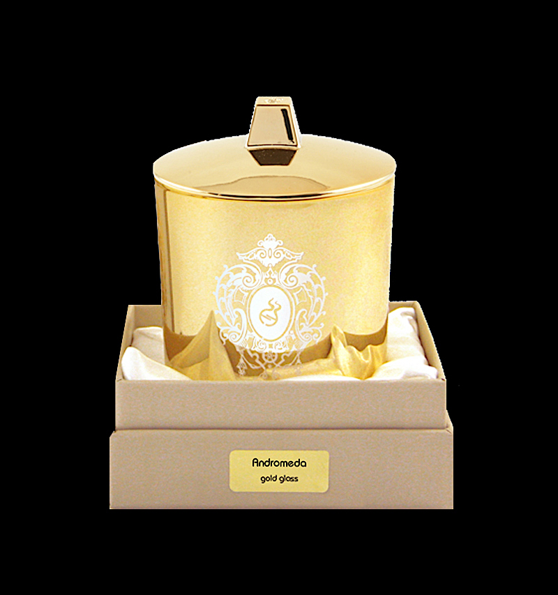 Bicchiere oro gioconda con coperchio, stoppino in legno – andromeda